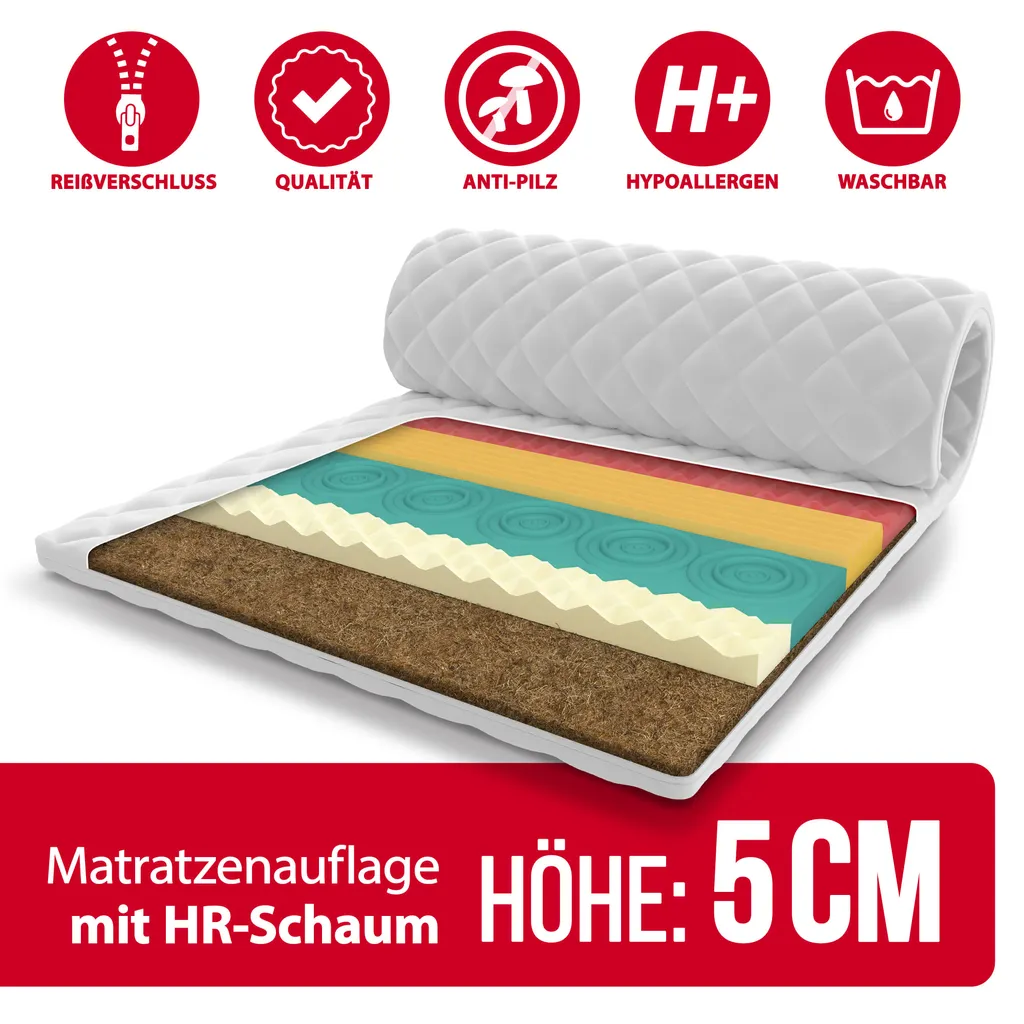 Topper 180 X 200 Cm Matratzenauflage Mit HR-Schaum Kokos 7 Zonen Höhe Ca 5 Cm H3 H4 Matratzenschoner Premium Bezug