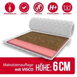 Topper 180 X 200 Cm Matratzenauflage Mit Kokos Visco-Schaum 7 Zonen Höhe Ca 6 Cm H2 H4 Mit Waschbarem Premium Bezug