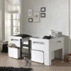 Vipack Halbhohes Bett PINO, Mit Rutsche Und Textilset „Dino“, Ausf. Kiefer Massiv Grau Lackiert