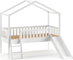 Vipack Hausbett Dallas Mit Leiter Und Rutsche, Liegefläche 90 X 200 Cm, Inkl. Rolllattenrost, Ausf. Kiefer Weiß Lackiert