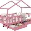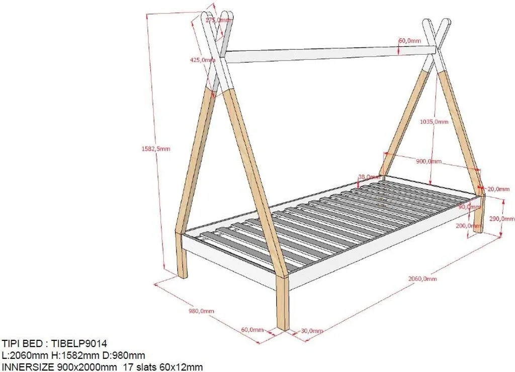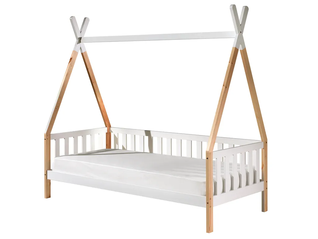 Vipack – Tipi Zelt Bett Liegefläche 90 X 200 Cm, Inkl. Rolllattenrost, Ausf. Kiefer Massiv Natur/weiß