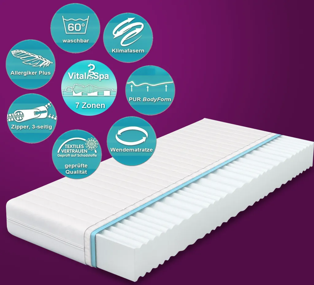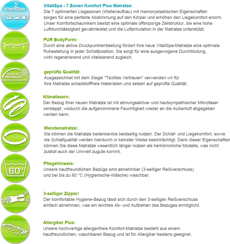 VitaliSpa Calma Comfort Plus Premium Marken Kaltschaum 7 Zonen Schaum Matratze 140×200 H2